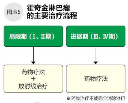 Ⅲ期、Ⅳ期的霍奇金淋巴瘤以多藥聯合的化療為主。其他實體腫瘤到了晚期很難治愈,但是晚期的霍奇金淋巴瘤也有一定的治愈機會。