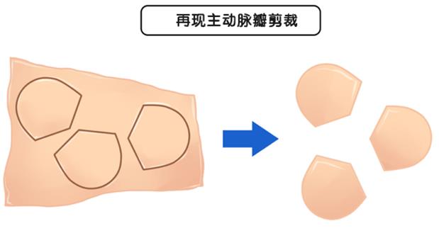 稀戊二醛溶液浸泡后,按照原主動脈瓣膜的大小、形狀,在心包膜切片上勾畫圖形,裁剪出新的中動脈瓣。