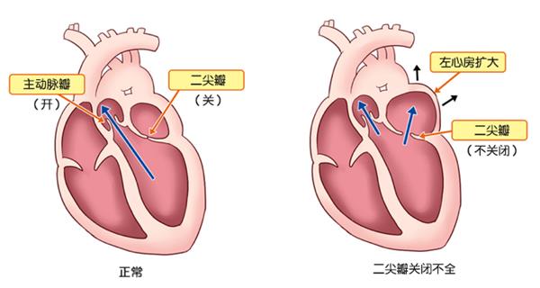 正常的心臟在收縮時將血液擠壓出心臟,流向全身,血液循環周而復始。正常狀態下,此時的血液被送入主動脈,二尖瓣應該處于關閉狀態。但是,當二尖瓣異常,左心室收縮向主動脈泵出血液時二尖瓣不能完全關閉,血液通過為關閉的二尖瓣空隙返流左心房。血液返流會降低心肌收縮能力,造成心室肥大等,發生心率不齊、心房悸動,增加心臟的負荷。