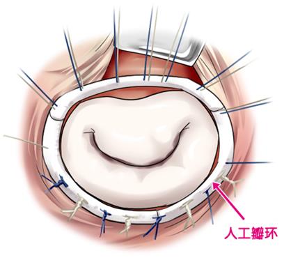 ?瓣環修復:縫合人工瓣環維持瓣環的形狀,增強瓣環功能