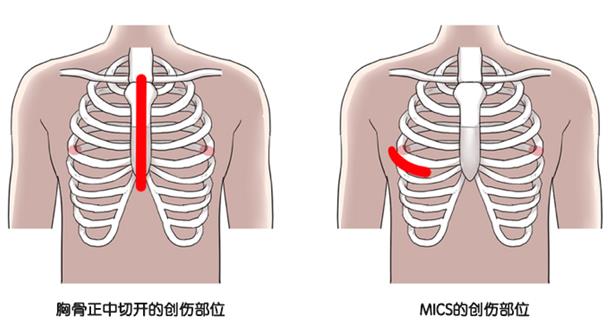 MICS手術在胸骨第4肋見切開小口,用特質器具進行手術。MICS的手術創傷小,手術視野也小,因此手術難度很高。需要手術熟練度高,經驗豐富的醫生操作,更需要手術團隊的完美配合。