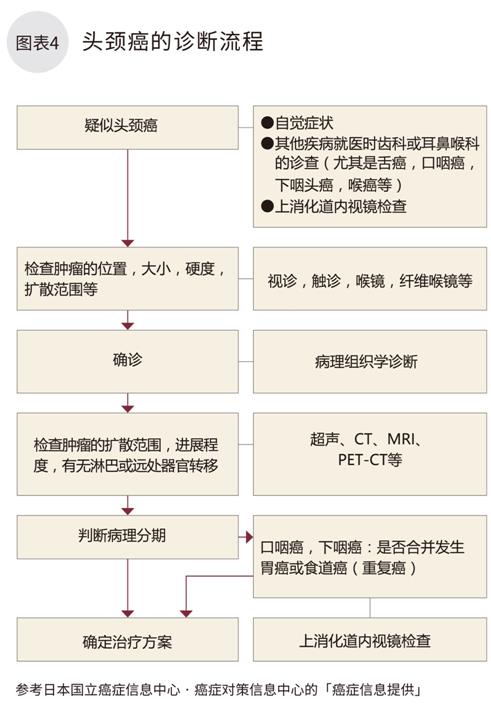 確診后,再通過超聲檢查是否發生淋巴轉移,通過CT,MRI,以及PET-CT等影像檢查確定腫瘤的擴散范圍。口咽癌和下咽癌,通常通過上消化道內視鏡檢查是否合并發生胃癌或食管癌(重復癌)。