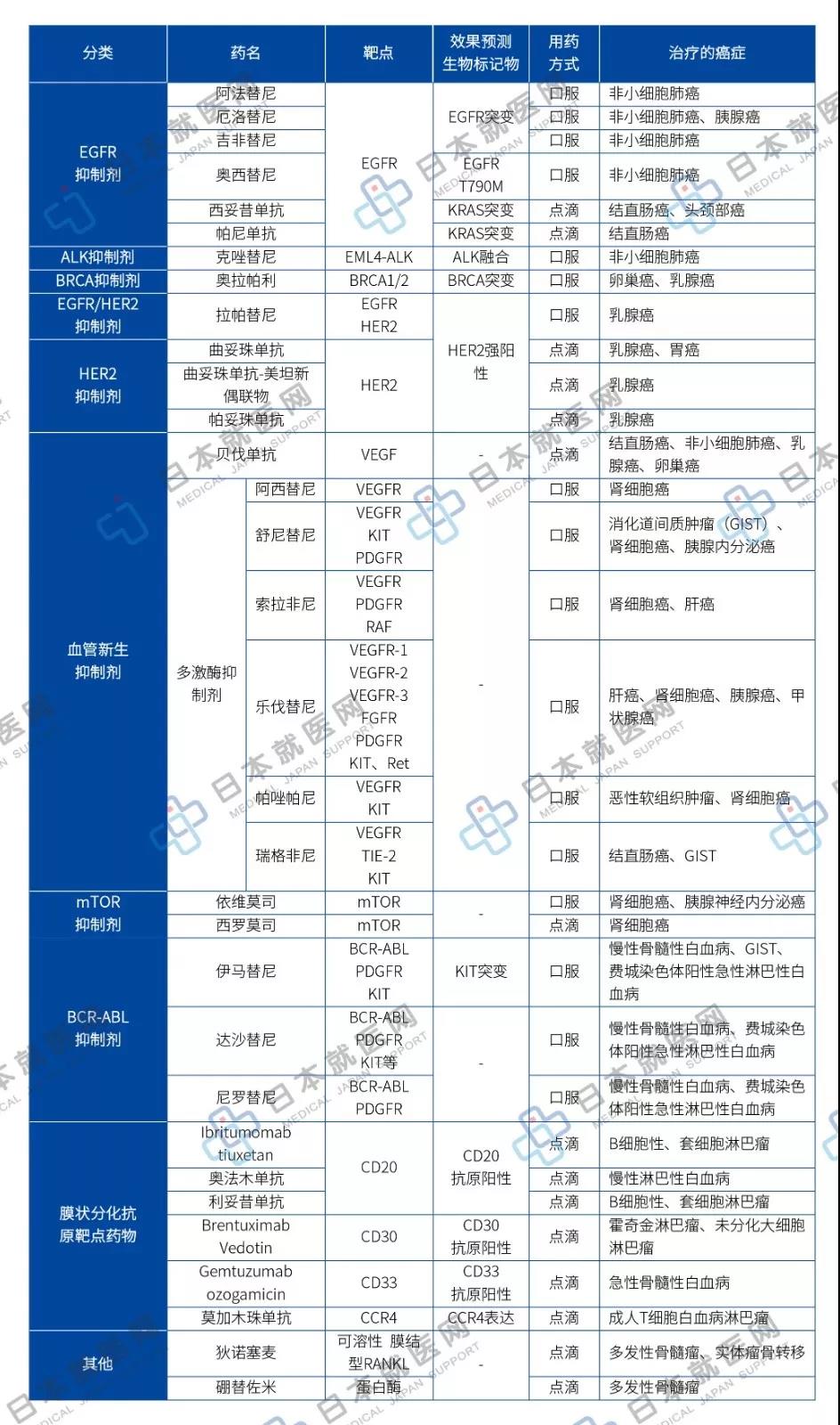在日本,癌癥治療學會以及各腫瘤分科學會制定的治療指南對靶向藥物的使用做了標準化規定,本文僅對常用靶向藥物做說明。