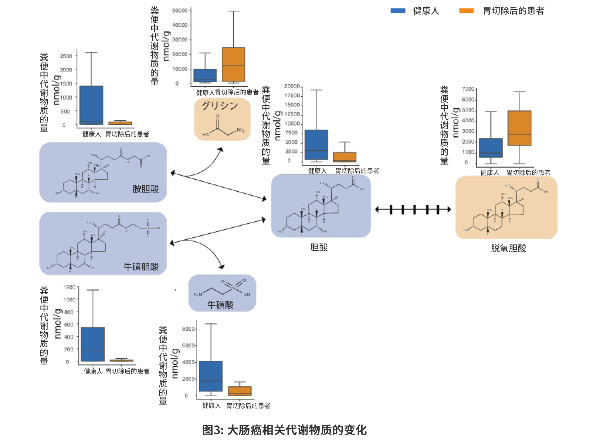 圖表3:與大腸癌相關(guān)的菌群代謝物的變化