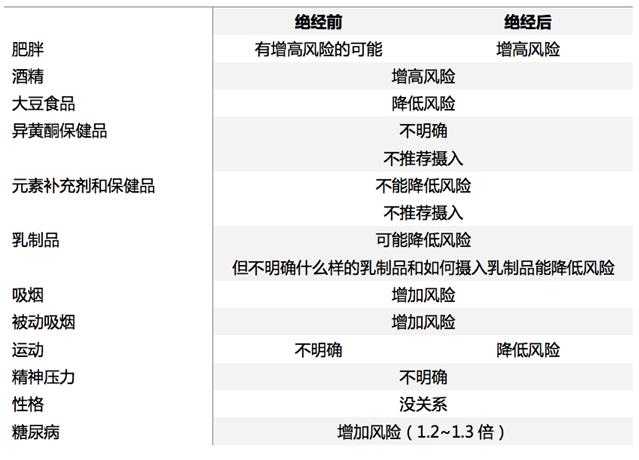 飲食習慣、生活方式、慢性病與患乳腺癌風險總結